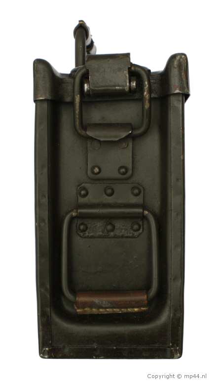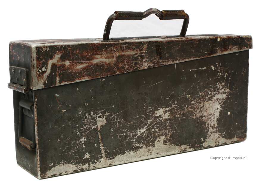 (8 x 57) for the MG34 (or MG42) is carried in 50 round belts. The dimensions of the can are 36 x 17 x 9 cm.